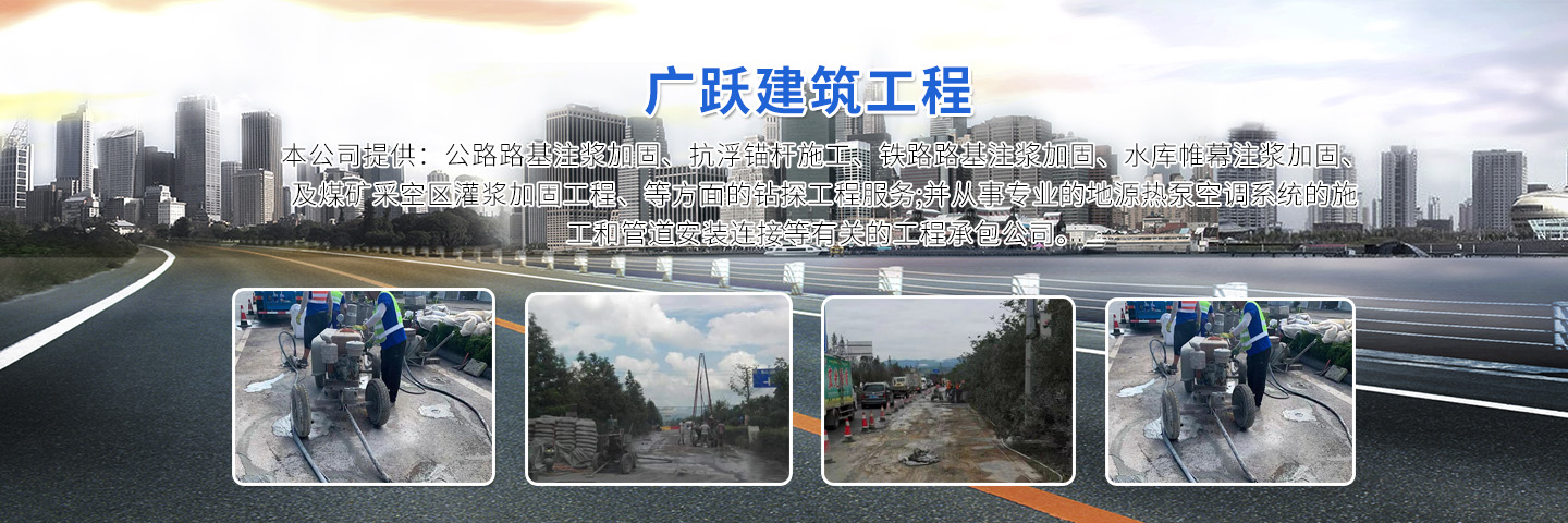 徐州廣躍建筑工程有限公司,公司成立于2010年,有專業(yè)施工人員50人,從事專業(yè)加固注漿施工。 本公司提供:公路路基注漿加固、抗浮錨桿施工、鐵路路基注漿加固、水庫帷幕注漿加固、及煤礦采空區(qū)灌漿加固工程、等方面的鉆探工程服務(wù);并從事專業(yè)的地源熱泵空調(diào)系統(tǒng)的施工和管道安裝連接等有關(guān)的工程承包公司。 公司成立以來一直專注于地質(zhì)鉆井工作,技術(shù)力量雄厚、設(shè)備先進(jìn):擁有專業(yè)的機(jī)械地質(zhì)鉆井精英隊(duì)伍;并具有GSY --150鉆機(jī)30余臺、GSY---200鉆機(jī)20余臺、專業(yè)回填封孔砂漿泵4臺等機(jī)械設(shè)備。公司稟承“優(yōu)質(zhì)的工程、優(yōu)惠的價(jià)格、優(yōu)良的售后服務(wù)”的經(jīng)營理念,以“客戶滿意”為原則,著力打造一支高效、專業(yè)、信譽(yù)的工程服務(wù)團(tuán)隊(duì)。 具體服務(wù)項(xiàng)目:工程施工降水井、水源空調(diào)井、地源熱泵井、機(jī)鉆深井(工廠專用井)、石頭井、飲用水井、農(nóng)田井、地基降水處理、大型基坑降水、地下室、車庫以及橋梁注漿加固等業(yè)務(wù)??捎糜趶S生產(chǎn)用水,機(jī)械冷卻用水和生活用水,用水量可根據(jù)貴公司的需求量身訂做。